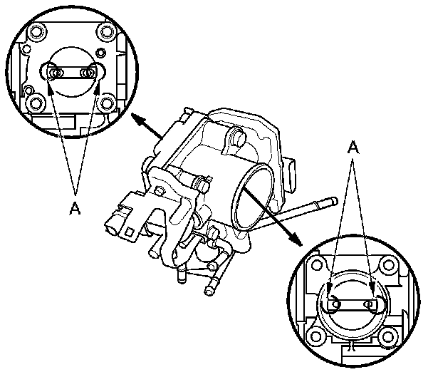 - To avoid removing the molybdenum coating, do not clean the bearing area of the throttle shaft (A).