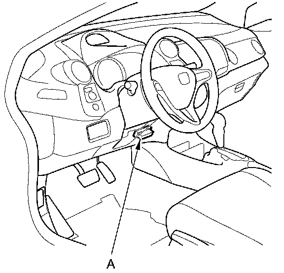 6. Connect the HDS to the data link connector (DLC) (A) located under the driver's side of the dashboard.