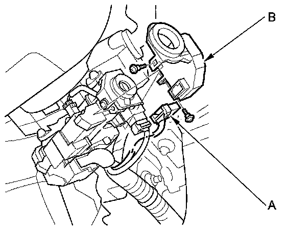 2. Disconnect the 7P connector (A) from the immobilizer-keyless control unit (B).