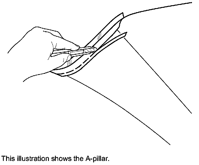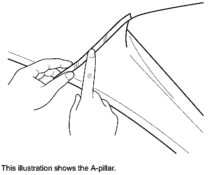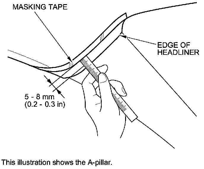 2. Apply masking tape to the headliner to mark the upper edge of each pillar trim.