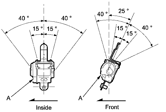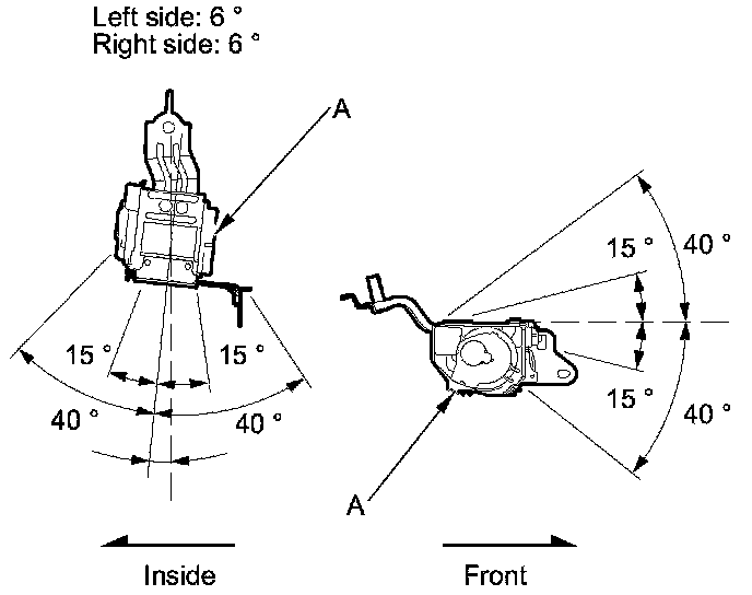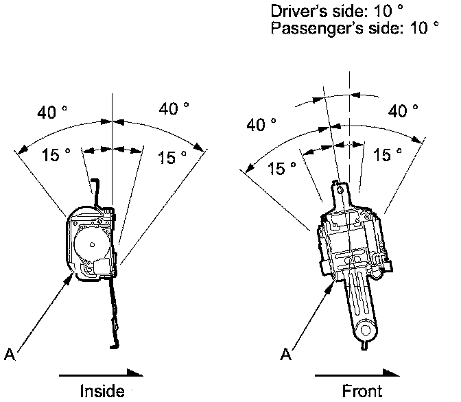 2. Make sure that the seat belt does not lock when the retractor (A) is leaned slowly up to 15 ° from the mounted position. The seat belt should lock when the retractor is leaned over 40 °. Do not attempt to disassemble the retractor.
