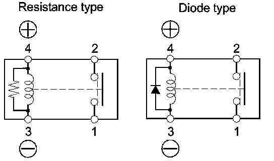 - There should be continuity between terminals No. 1 and No. 2 when battery power is connected to terminal No. 4, and body ground is connected to terminal No. 3.