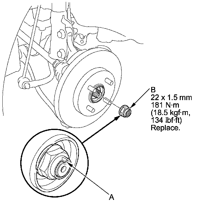 - Before installing the spindle nut, apply a small amount of engine oil to the seating surface of the nut. After tightening, use a drift to stake the spindle nut shoulder against the driveshaft.