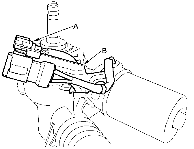 2. Remove the torque sensor 4P connector (A) from the connector bracket (B).
