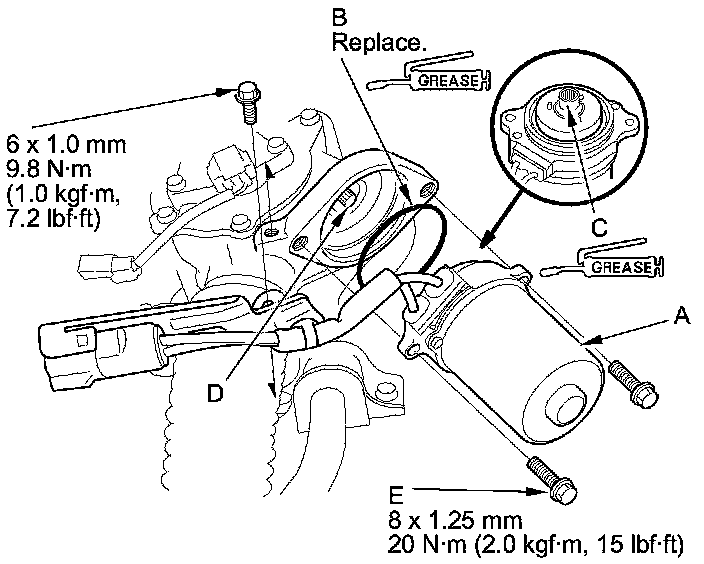 2. Apply grease included in the motor set to the new O-ring (B), and carefully fit it on the EPS motor.