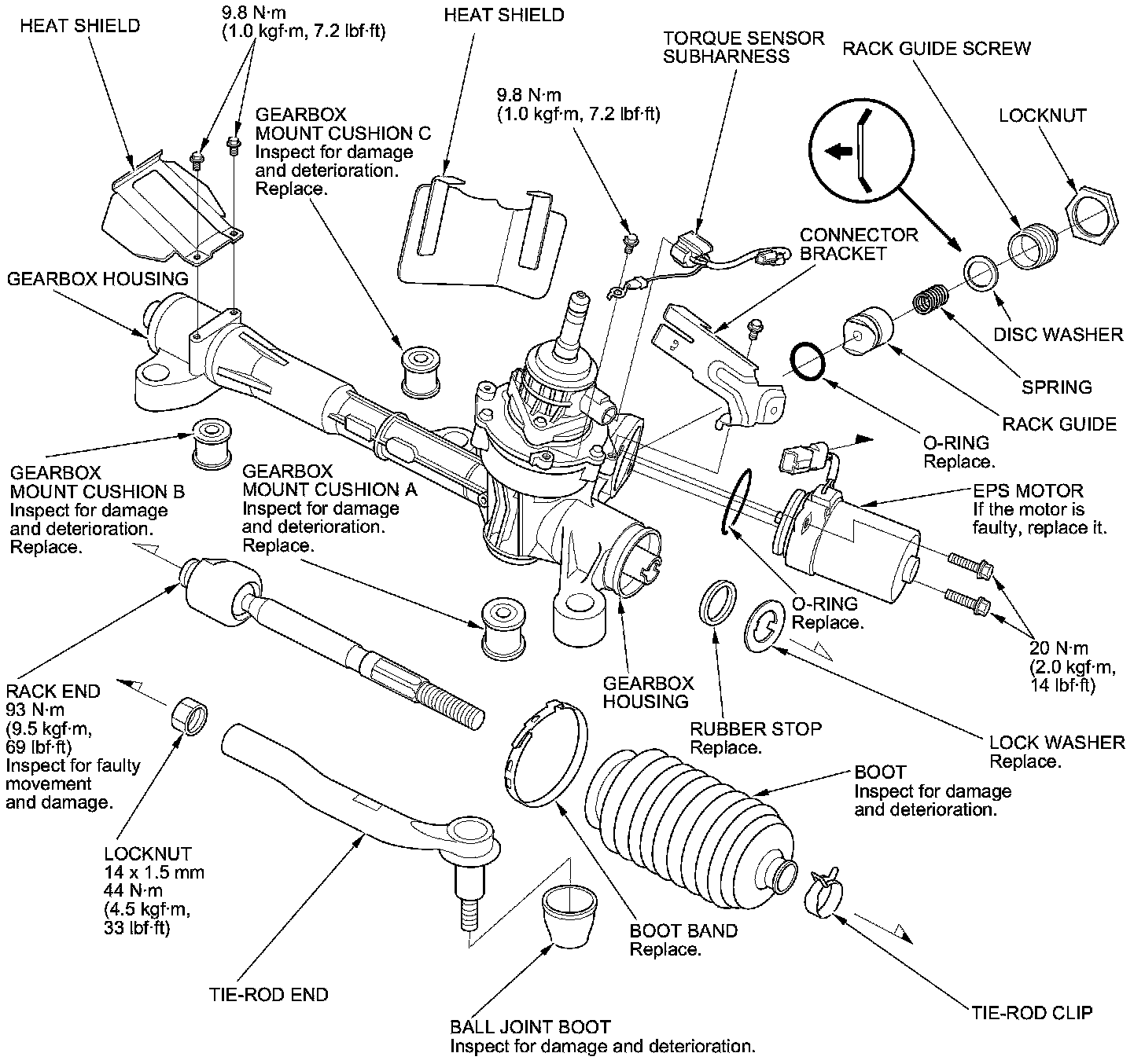 12. Slide the rack shaft right and left to be certain that the boots are not deformed or twisted.