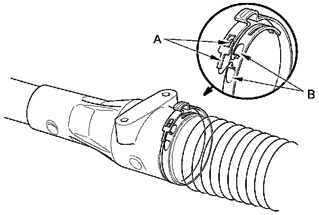 10. Install the new boot bands by aligning the tabs (A) with the holes (B) of the band.