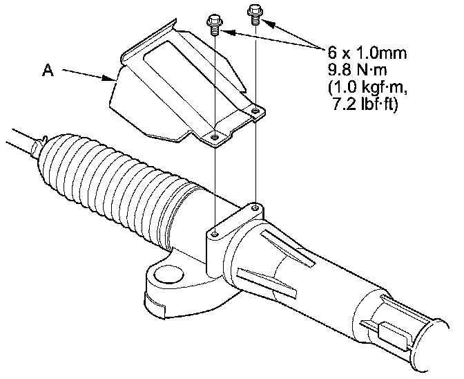 14. Install the heat shield (A), then tighten the bolts to the specified torque.