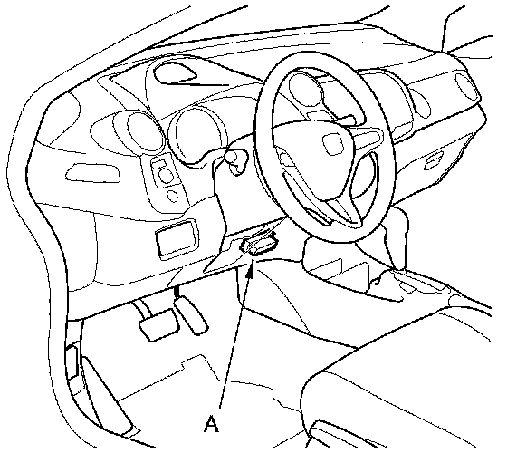 1. If the system indicators stay on, connect the HDS to the data link connector (DLC) (A) located under the driver's side of the dashboard.