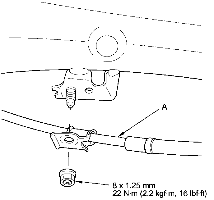 - After installing the brake hose, the brake line, and the parking brake cable, check for interference and twisting of other parts.