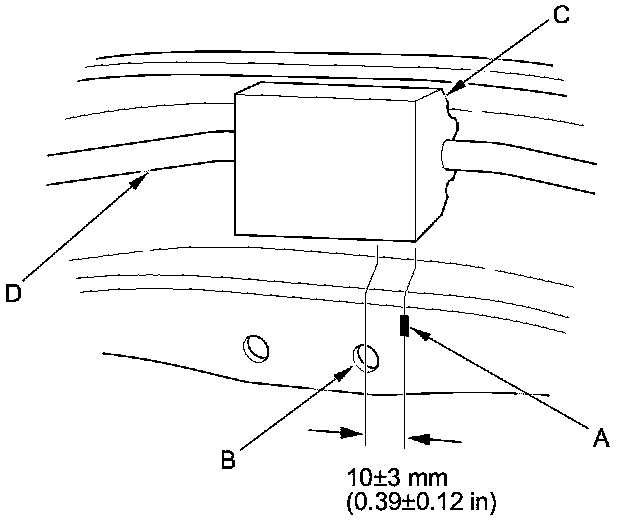 5. Make a mark (A) near the hole (B) of the axle beam as shown. Install the stabilizer bushing (C) into the axle beam by aligning the end face of the stabilizer bushing to the plant mark.