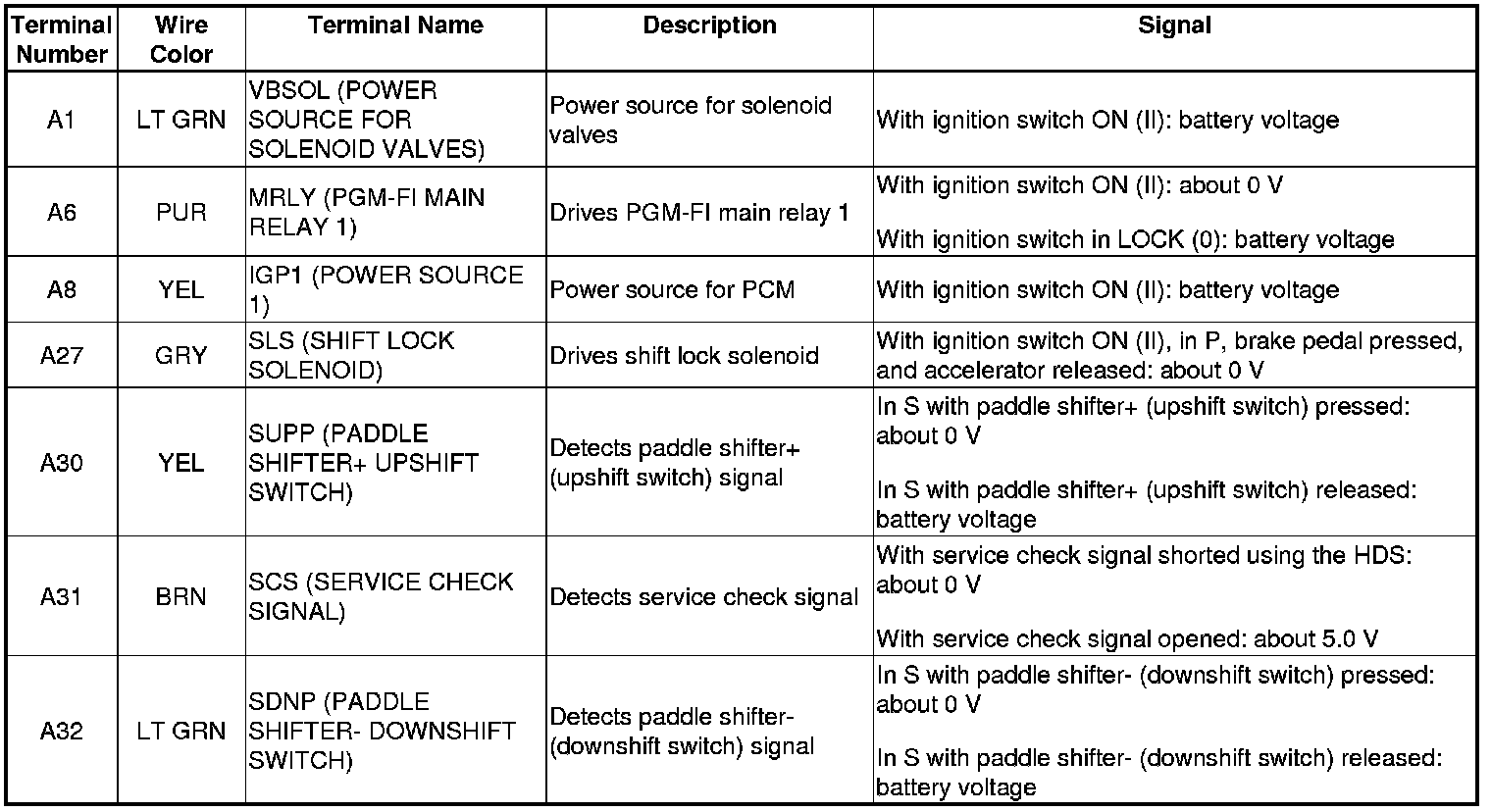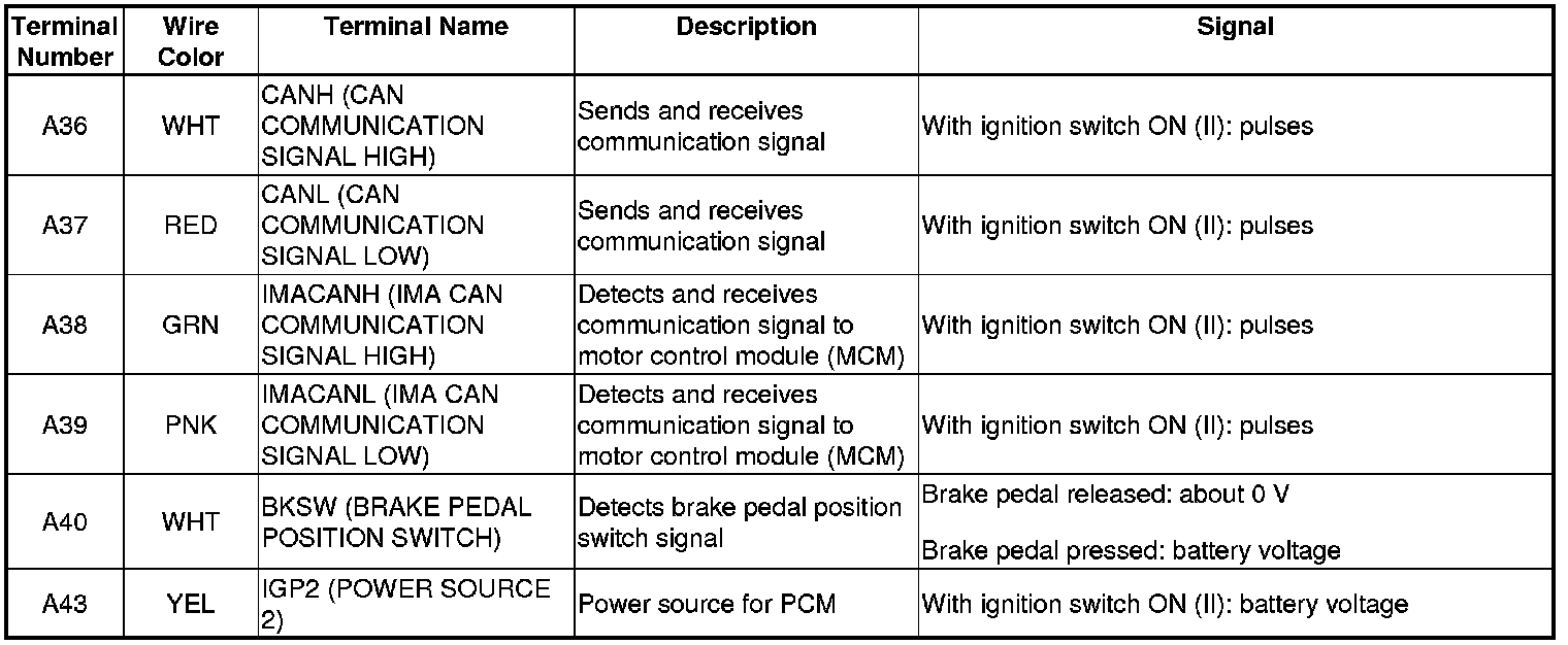 PCM Inputs and Outputs at Connector A (square) (44P)