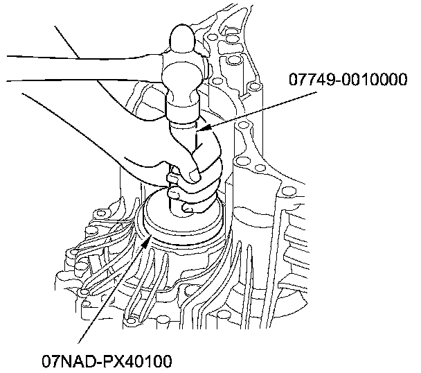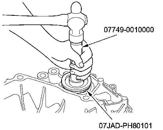 3. Install a new oil seal flush to the transmission housing using the 15 x 135L driver handle and the 78 x 80 mm bearing driver attachment.