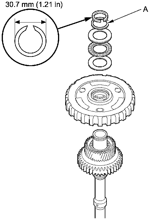 4. Check that the snap ring outside diameter is 30.7 mm (1.21 in) or less.