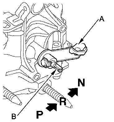 NOTE: Be sure to use a 2.0 mm (0.08 in) feeler gauge blade or equivalent to hold the transmission range switch in the N position.