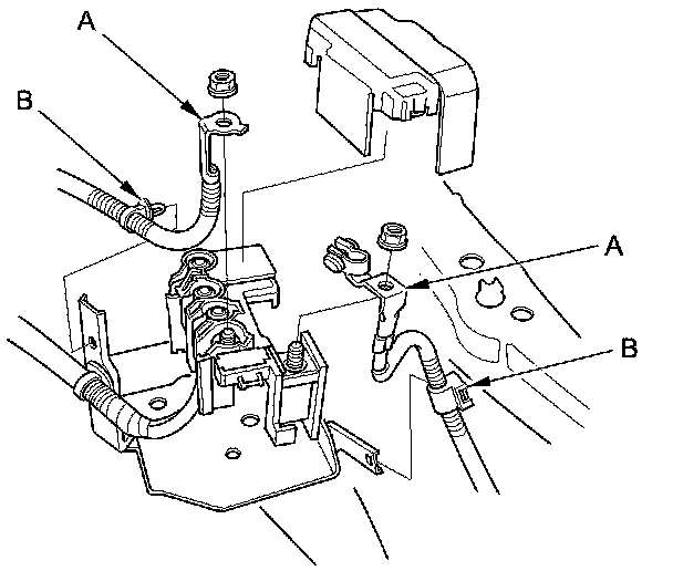 4. Disconnect the battery cables (A) from the battery terminal fuse box.