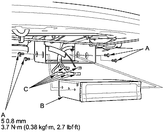 5. Disconnect the navigation unit connectors (C).