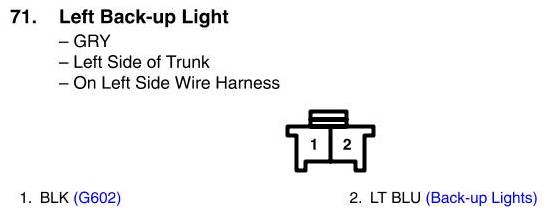 View 71 - Left Back-up Light Connector View
