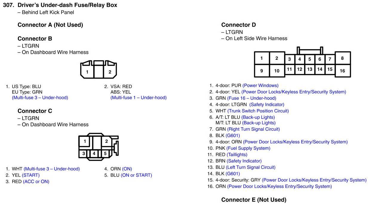 Driver's Under-dash Fuse/Relay Box Connector View