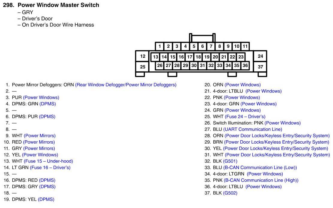Power Window Master Switch Connector View