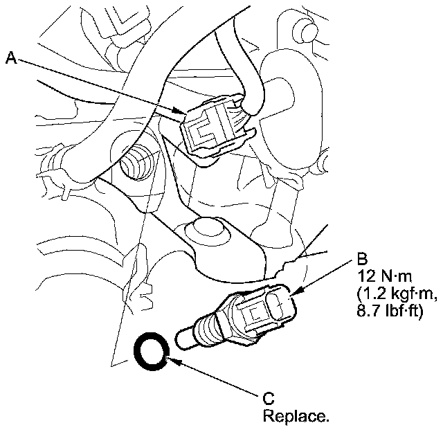 4. Install the parts in the reverse order of removal with a new O-ring (C), then refill the radiator with engine coolant Service and Repair.