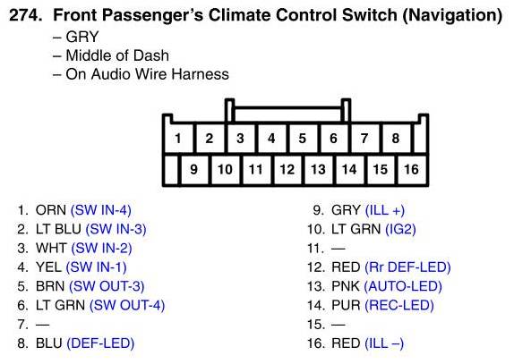 Front Passenger's Climate Control Switch Connector View (Navigation)