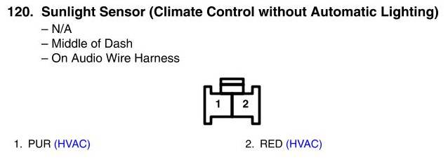 Sunlight Sensor Connector View (Climate Control without Automatic Lighting)