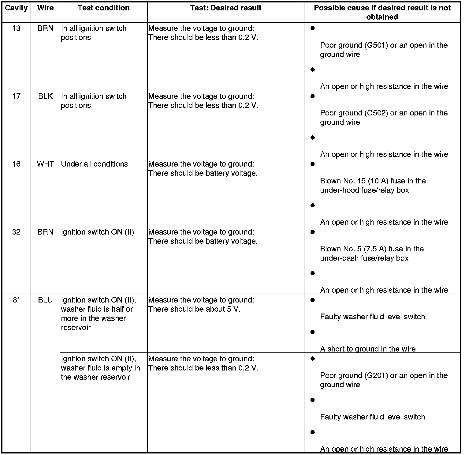 5. Reconnect the 32P connector to the gauge control module, and do these input tests at the following connector.