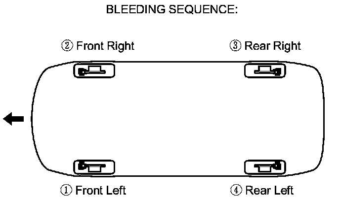 - The reservoir connected to the master cylinder must be at the MAX (upper) level mark at the start of the bleeding procedure and checked after bleeding each wheel location. Add fluid as required.