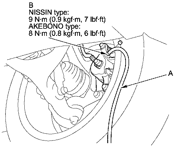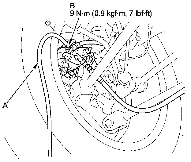 4. Attach a length of clear drain tube (A) to the bleed screw (B), then loosen the bleed screw to allow air to escape from the system. Then tighten the bleed screw securely.