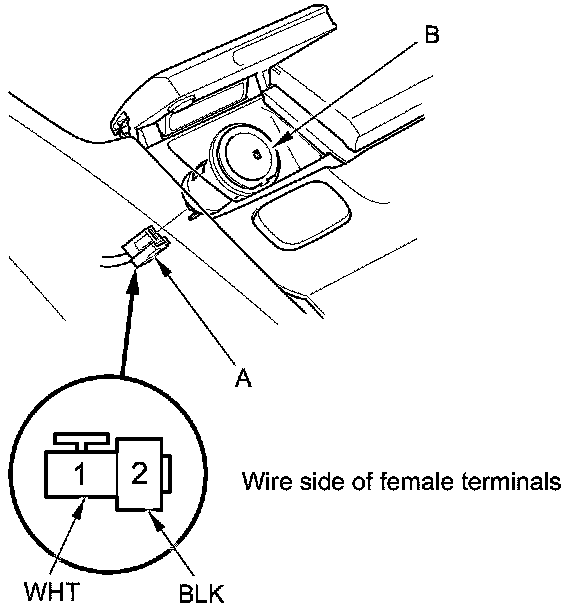2. Disconnect the 2P connector (A) from the front accessory power socket (B).