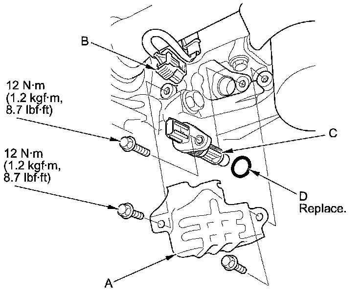 5. Install the parts in the reverse order of removal with a new O-ring (D).