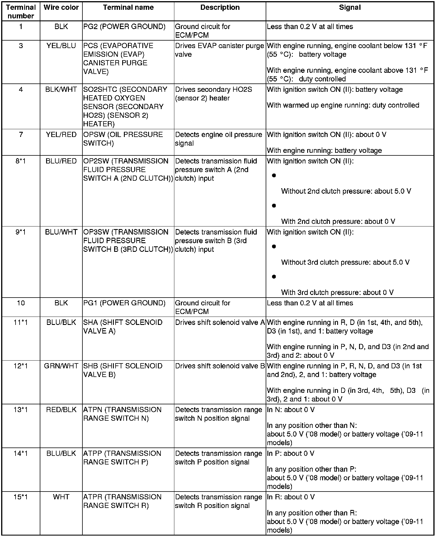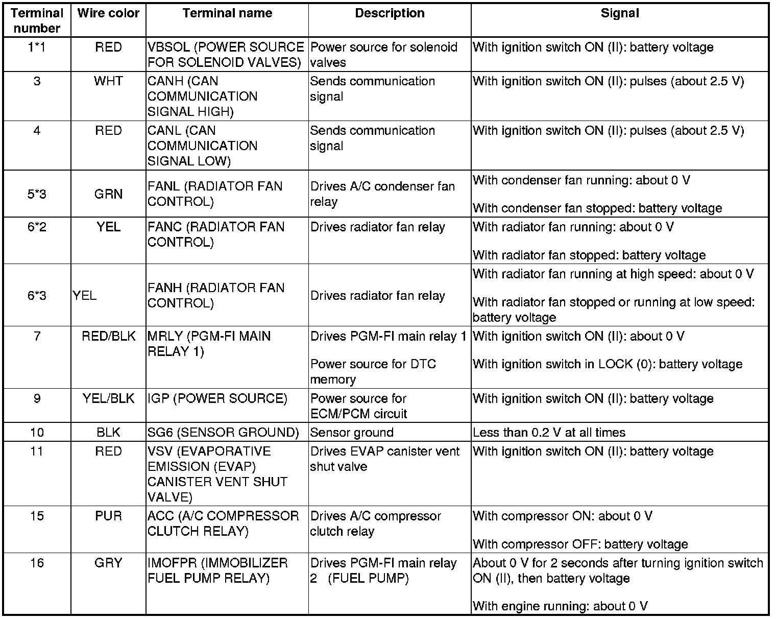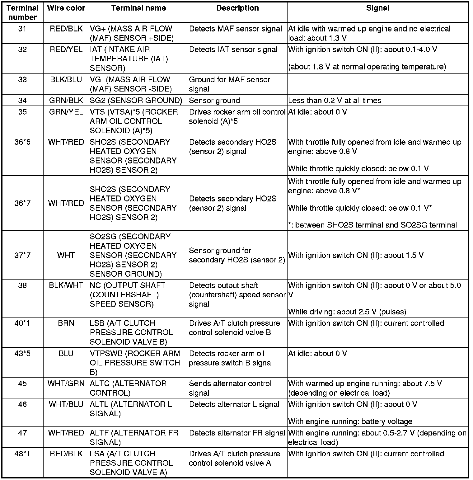 ECM/PCM Inputs and Outputs at ECM/PCM Connector A (square) (49P)