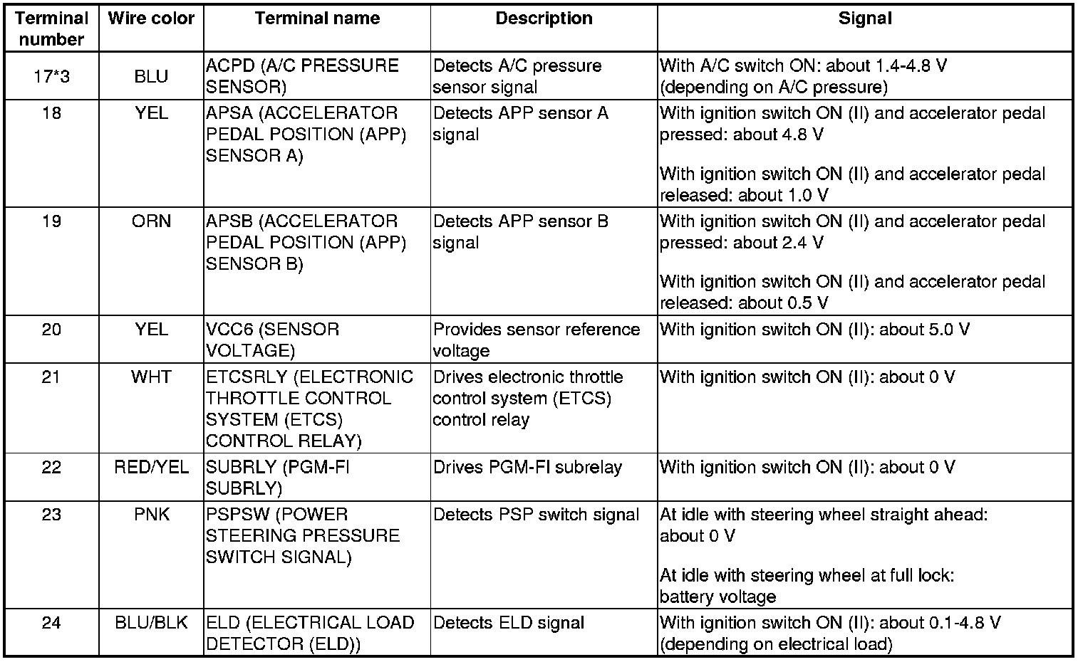 ECM/PCM Inputs and Outputs at ECM/PCM Connector B (triangle) (49P)