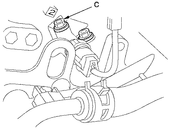 15. Shift to 2, and measure the 2nd clutch pressure at the 2nd clutch pressure inspection port (C) while holding the engine speed at 2,000 rpm.