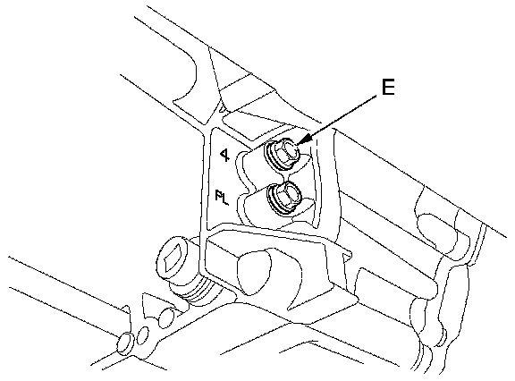 23. Shift to 4th gear in D, and measure the 4th clutch pressure at the 4th clutch pressure inspection port (E) while holding the engine speed at 2,000 rpm.