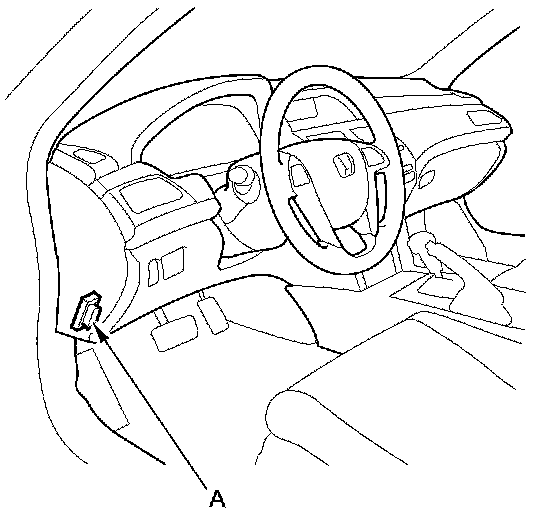 When the Honda Diagnostic System (HDS) is connected to the data link connector (DLC) (A) located under the driver's side of the dashboard, it will indicate the diagnostic trouble code (DTC) when the ignition switch is turned to ON (II) and the appropriate menu is selected.