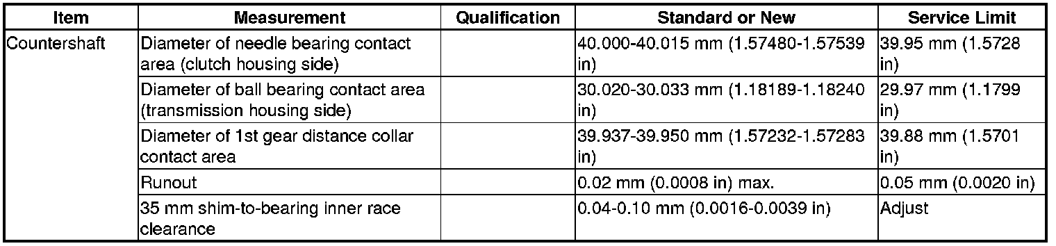 Countershaft Specification(s) (M/T)