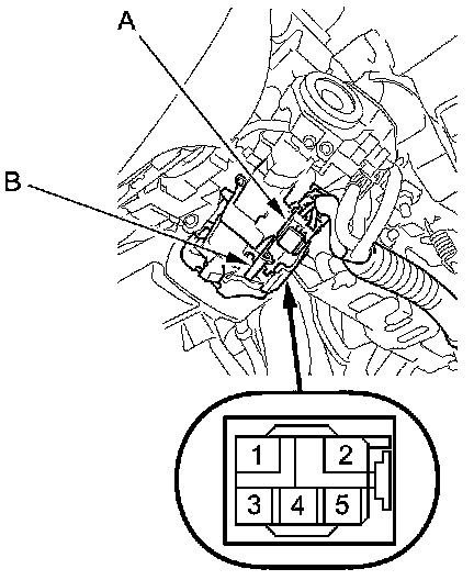 3. Disconnect the 5P connector (A) from the ignition switch (B).