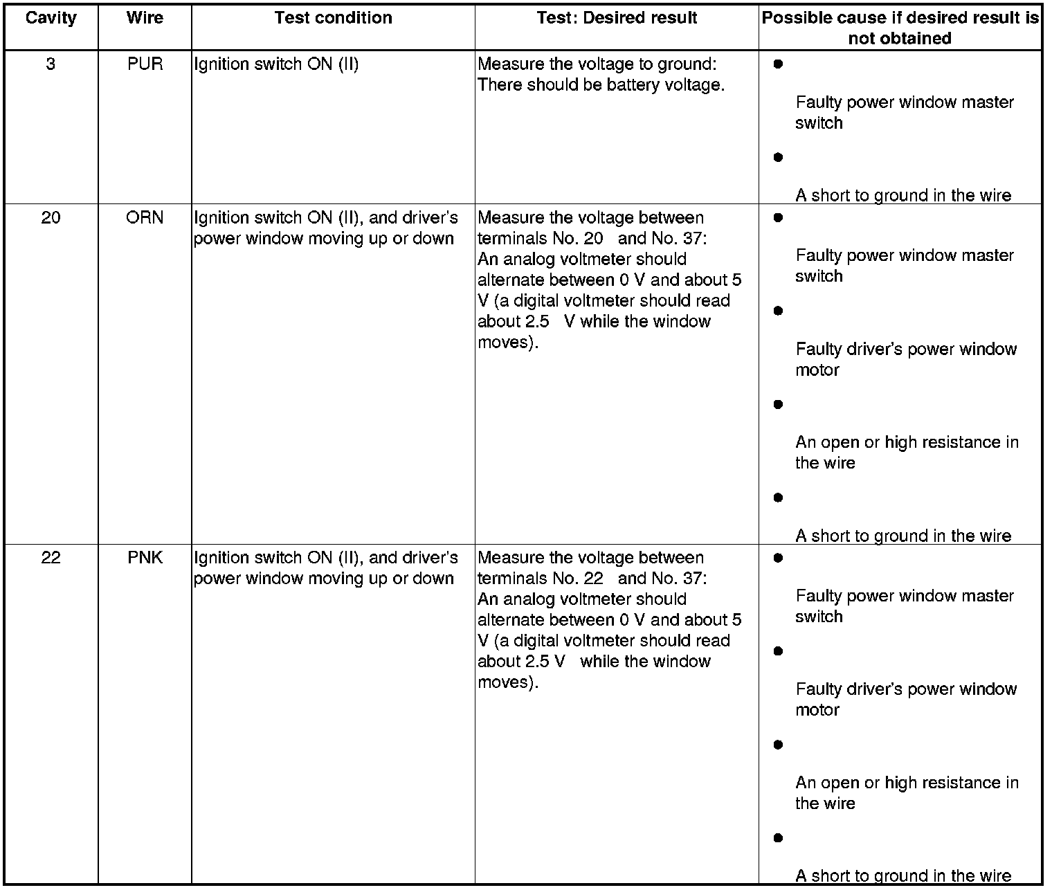 - If all the input tests prove OK, the door multiplex control unit must be faulty, replace the power window master switch.