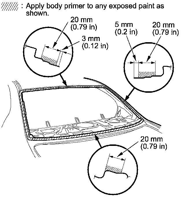 - Do not apply body primer to the rear window, and do not mix up the body and glass primer applicators.