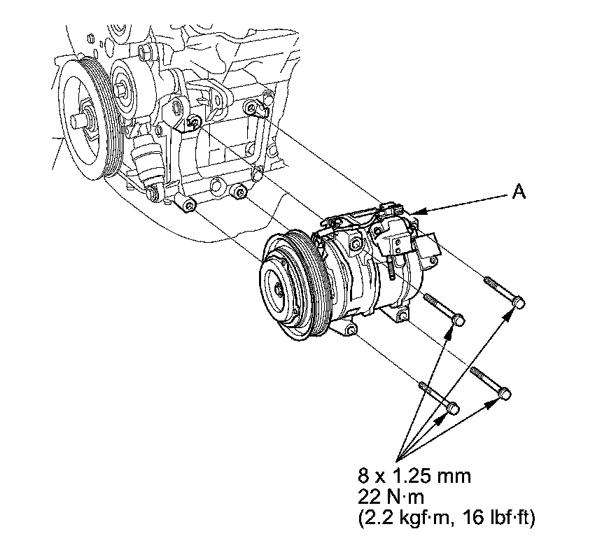 7. Install the A/C compressor in the reverse order of removal, and note these items: