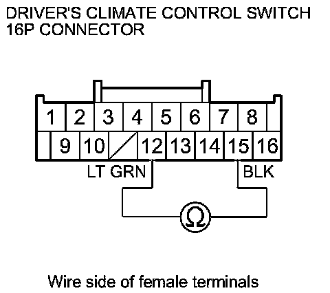 16. Check for continuity between body ground and driver's climate control switch 16P connector terminal No. 15.