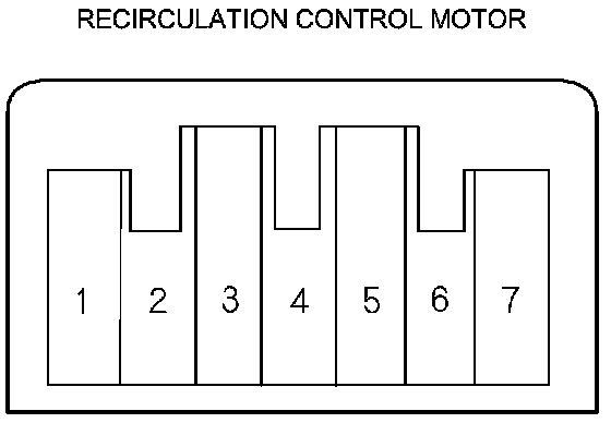 4. Measure the resistance between terminals No. 5 and No. 7 of the recirculation control motor. It should be between 4.2 and 7.8 kOhms.