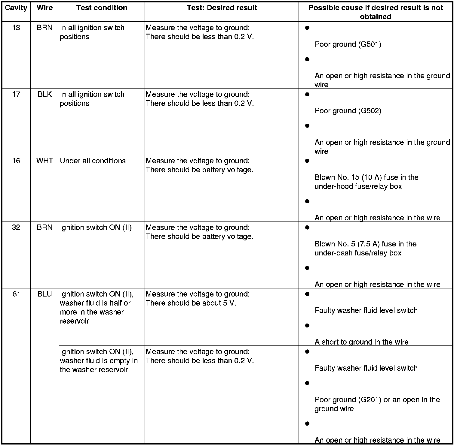 4. With the connector still disconnected, do the following input tests: