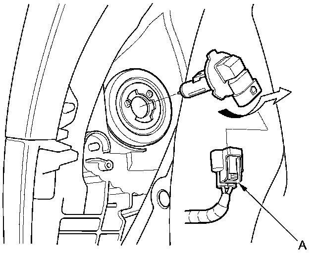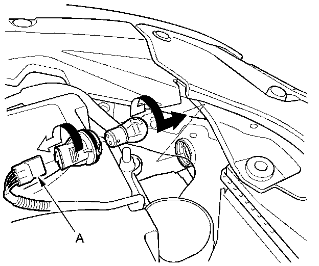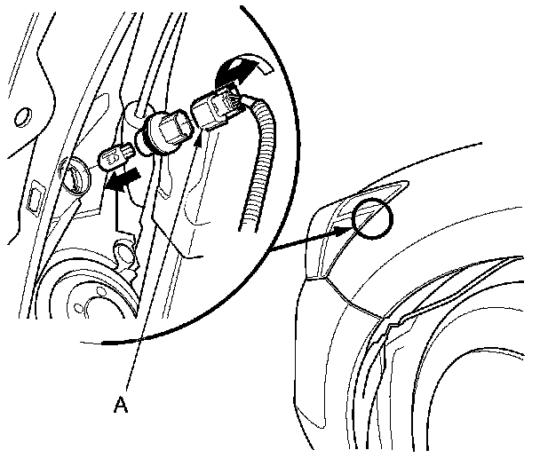 2. Disconnect the 2P connector (A) from the front side marker light.