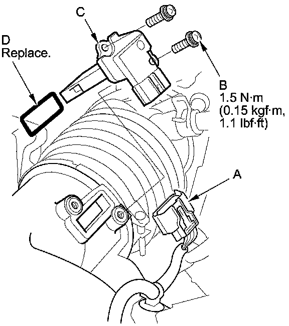 4. Install the parts in the reverse order of removal with a new O-ring (D).