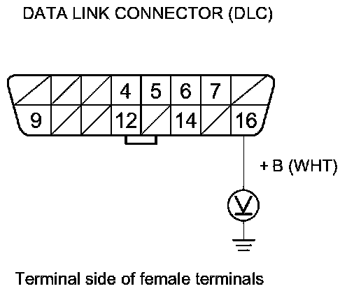 24. Measure the voltage between DLC terminal No. 16 and body ground.