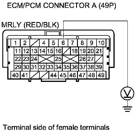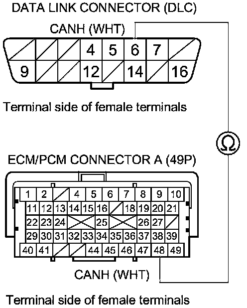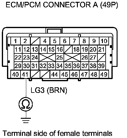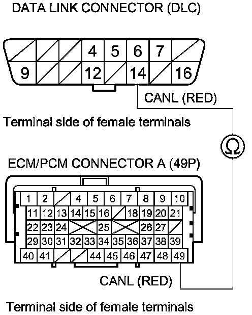 31. Check for continuity between ECM/PCM connector terminal A49 and DLC terminal No. 14.