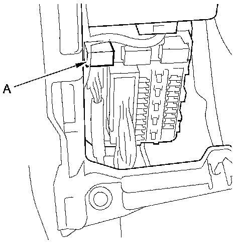 44. Remove PGM-FI main relay 2 (FUEL PUMP) (A) from the driver's under-dash fuse/relay box.